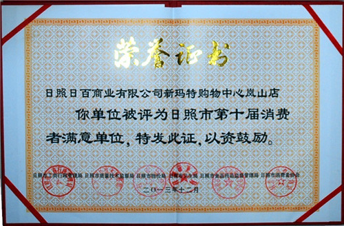 嵐山新瑪特——榮獲日照市第十屆消費(fèi)者滿意單位